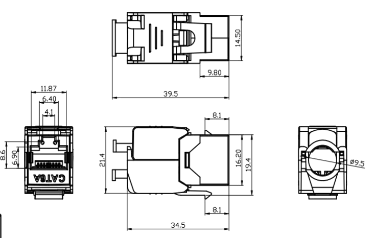JACK -Gehäuse: Das Jackgehäuse besteht in der Regel aus Kunststoff und bietet die Struktur und den Schutz für die inneren Komponenten der Buchse. Es ist so konzipiert, dass es sich sicher in eine Keystone -Öffnung oder -Slot einfügt.